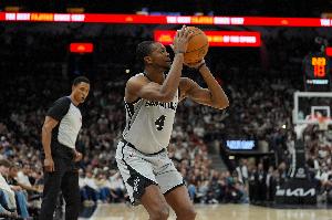 上半場比賽,馬刺后衛??怂构シ纼啥舜虻酶咝逸p松,場上作用顯著,他出戰12分鐘,5中4,三分1中1拿到9分3籃板1助攻2搶斷,正負值+30!