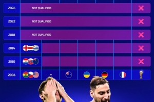 體育資訊4月2日訊 世預(yù)賽附加賽決賽,意大利點(diǎn)球大戰(zhàn)不敵波黑,連續(xù)三屆無(wú)緣世界杯。德國(guó)轉(zhuǎn)會(huì)市場(chǎng)盤(pán)點(diǎn)了2006年以來(lái)意大利的世界杯成績(jī)。