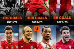 拜仁隊史單賽季德甲進球數紀錄是1971-72賽季,那個賽季德甲豪門打進了101球,2019-20賽季,他們打進100球險些追平該紀錄。在聯賽還是7輪的情況下,拜仁只需打進5球就可創造新的紀錄。