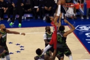 GIF-巴洛隔著李凱爾暴扣得分