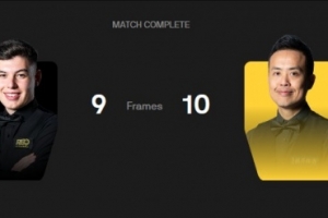 第一階段過后利亞姆·戴維斯5-4領先傅家俊,第二階段雙方戰(zhàn)至決勝局,傅家俊以10-9的比分戰(zhàn)勝對手晉級。
