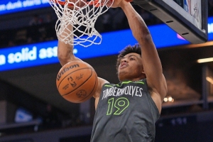 體育資訊4月11日訊 NBA常規(guī)賽,森林狼半場69-73落后火箭。