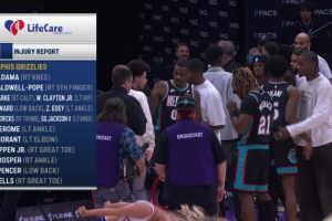 本場(chǎng)比賽,灰熊14名球員登上傷病名單,缺陣球員累計(jì)薪資高達(dá)1.56億!出戰(zhàn)6人薪資分別為: