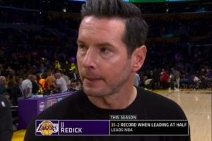 轉播方在中場時曬出數據,本賽季湖人半場領先時,戰績高達35勝2負。