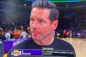 體育資訊4月13日訊 NBA常規賽,湖人半場62-45領先爵士。主帥雷迪克在中場時接受了采訪。