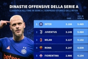 體育資訊4月13日訊 德國轉(zhuǎn)會(huì)市場統(tǒng)計(jì)了各隊(duì)在意甲的歷史進(jìn)球總數(shù)量,并列出榜單,國米打進(jìn)5465球,超越尤文居首。