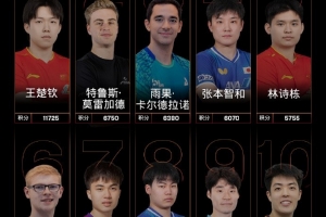 男單世界前10:1王楚欽、2莫雷加德、3雨果、4張本智和、5林詩棟、6-小勒布倫、7-林昀儒、8-松島輝空、9張禹珍、10邱黨。