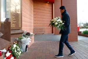 巴黎俱樂部主席納賽爾、主帥恩里克攜球員前往安菲爾德球場,悼念希爾斯堡慘案遇難者,并向若塔及其兄弟安德烈·席爾瓦的紀念碑獻花。