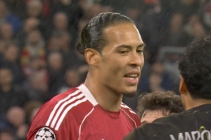 體育資訊4月15日訊 利物浦vs巴黎上半場,范戴克門前補射被馬爾基尼奧斯極限鏟球封堵,起身后范戴克對同行點頭稱贊,口型似乎在說“That's nice!”