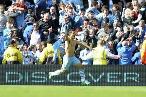 這是英超歷史上最具標(biāo)志性的畫面之一:阿圭羅在第94分鐘打入制勝球,將冠軍獎(jiǎng)杯從死敵曼聯(lián)手中奪走后,他脫掉球衣慶祝。