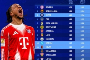體育資訊4月15日訊 德國轉會市場盤點了歐洲五大聯賽各球隊凈勝球和場均積分情況,具體如下: