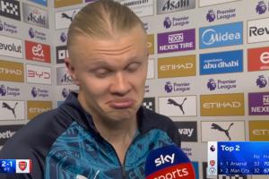 哈蘭德:我覺得如果我當時倒在地上——我不會輕易倒地,除非有人真的對我犯規——也許就會是紅牌。我不確定,我還沒看過那個畫面,但事情就是這樣。我不會那么容易倒地。我吃到了一張黃牌,不太清楚為什么,但是他沖著我的臉就來了。就是這樣。
