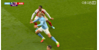 比賽第38分鐘,哈蘭德和加布里埃爾爭搶高空球時雙雙倒地,二人從倒地到起身一直在纏斗。