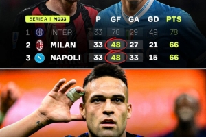 在意甲賽場上,國米本賽季展示出了獨一檔的攻擊力,藍黑軍團目前凈勝球達到了49球,而位居第二和第三的米蘭及那不勒斯進球數均為48球。