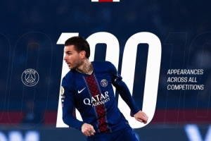體育資訊4月23日訊 法甲第26輪比賽,巴黎圣日耳曼在主場迎戰南特。本場比賽,盧卡斯替補登場,迎來巴黎圣日耳曼生涯百場里程碑之戰。