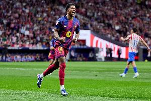 體育資訊04月05日訊 西甲第30輪,巴塞羅那客場2-1戰勝馬德里競技,此役拉什福德首發出戰79分鐘,打入一粒精彩進球。