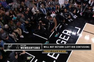 下半場開始時馬刺官方宣布文班左肋骨挫傷,下半場提前退賽。
