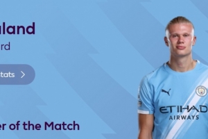 打入制勝球!英超官方:哈蘭德當選曼城1-0伯恩利全場最佳球員